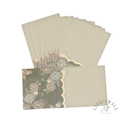 LIFAFEWALA Designer Print Small Flower Design Shagun Envelopes For Gifting, Weddings,etc Color Half Green| Pack of 10 |